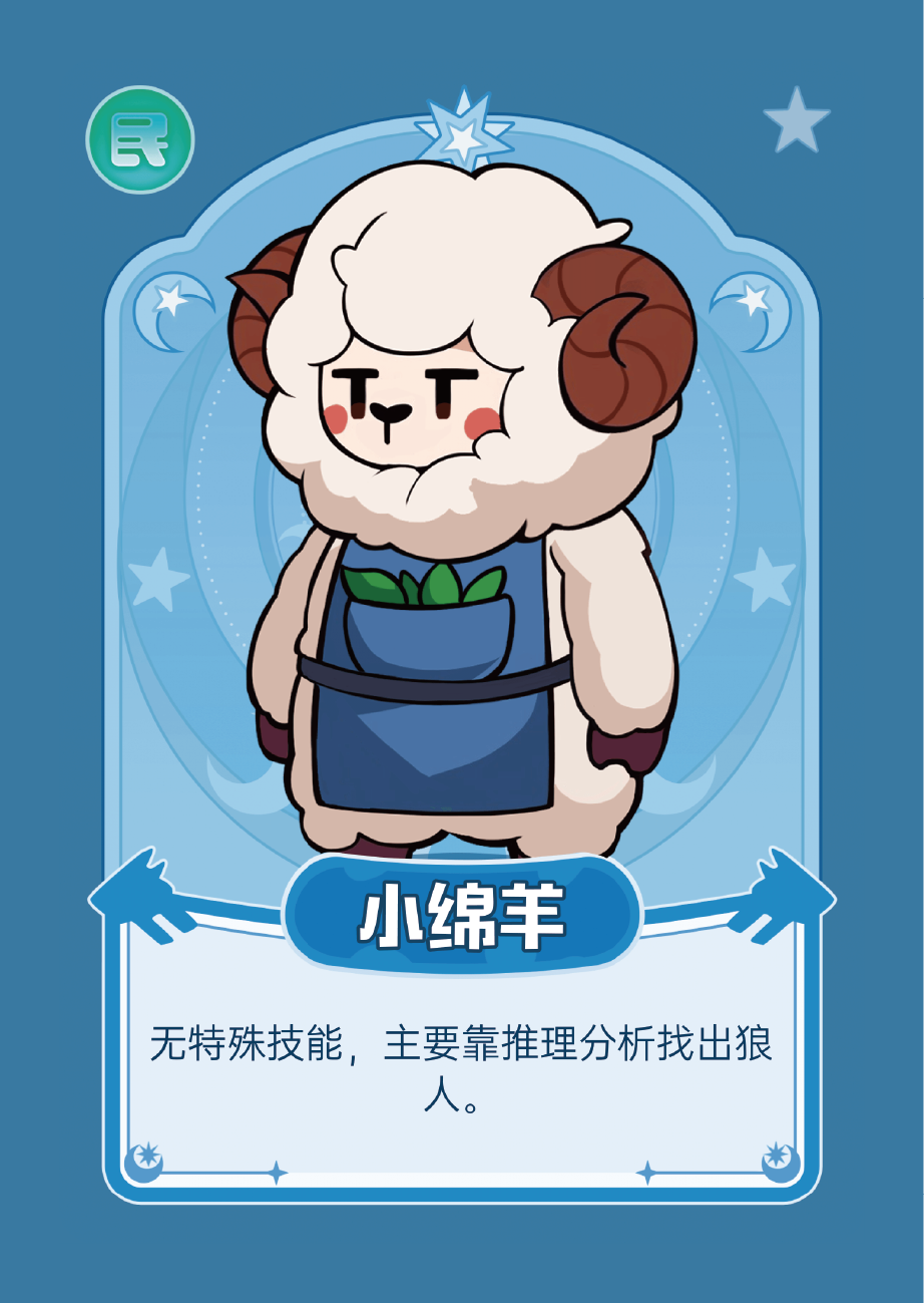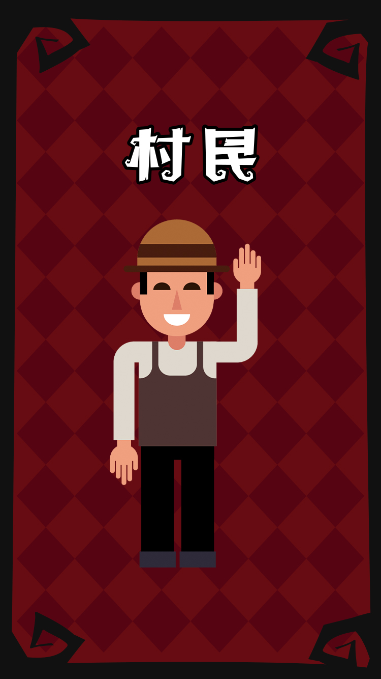 技能:无任何特殊技能,只能通过听取场上其它玩法的发言,用自己的逻辑来找出狼人。
